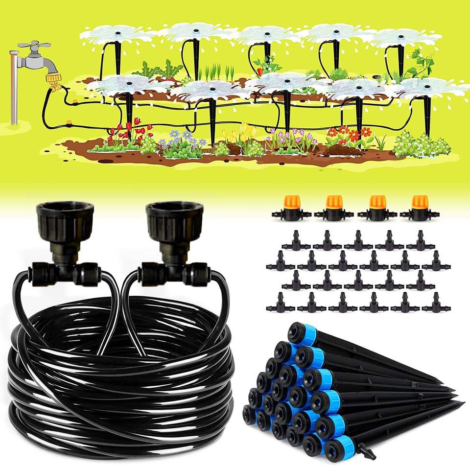 Kit d'irrigation goutte-à-goutte avec tuyau de 30 m et arroseurs pour plantes de jardin, système d'arrosage automatique