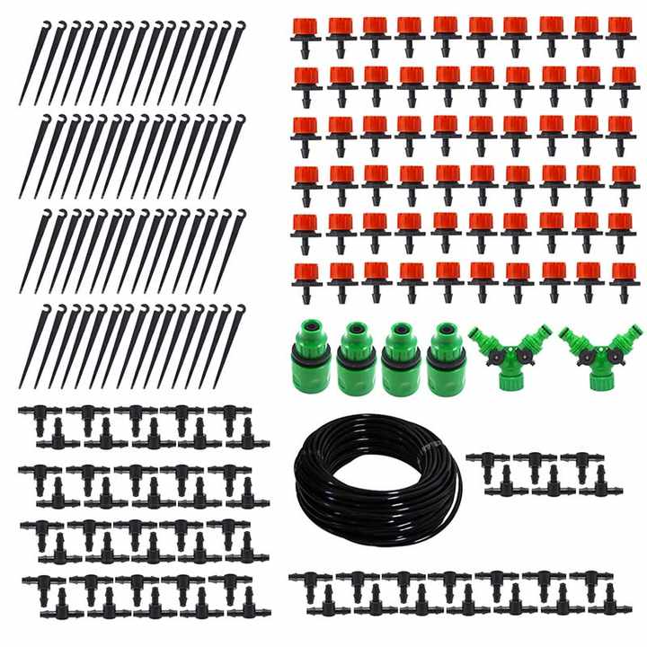 Kit d'arrosage goutte-à-goutte automatique pour légumes et fleurs, tuyau de 50m, pour jardin domestique, rouge réglable