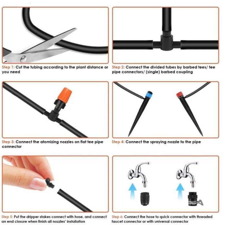 Système d'irrigation goutte à goutte 15m, kit 40 têtes, double tube PVC, arrosage automatique, brumisation pour jardin et plantes