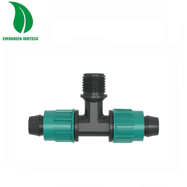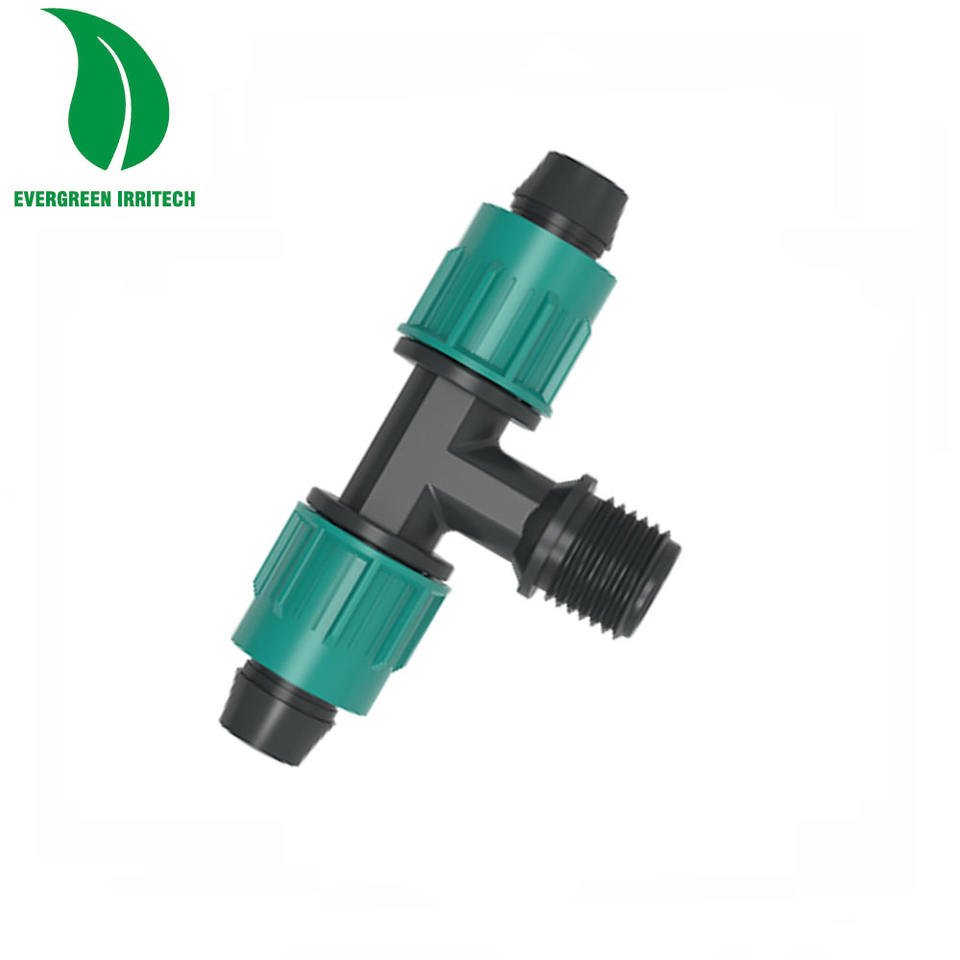 Raccord en T mâle à compression pour tuyau d'irrigation avec écrou de blocage