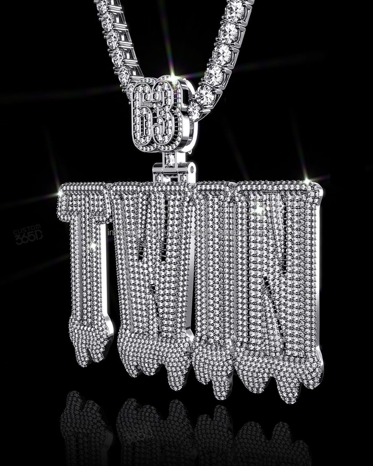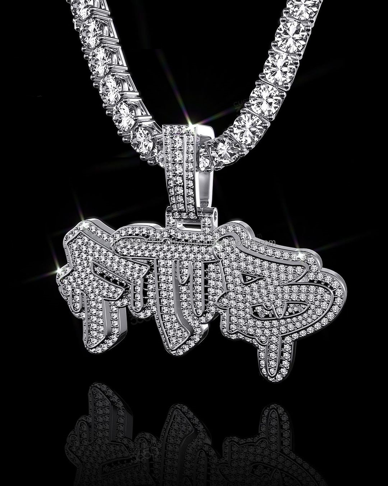 Pendentif lettre style Dripping design personnalisé Pendentif style designer tendance en argent sterling avec moissanites de qualité VVS