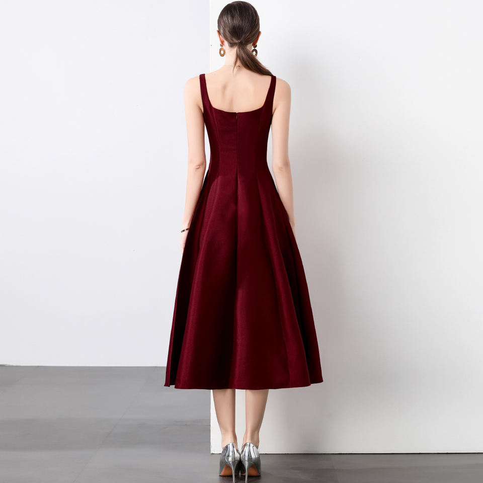 Droma en stock, nouvelle conception 2025, robe de soirée rouge sans manches, robe élégante et sexy pour femmes, robe de soirée à bretelles