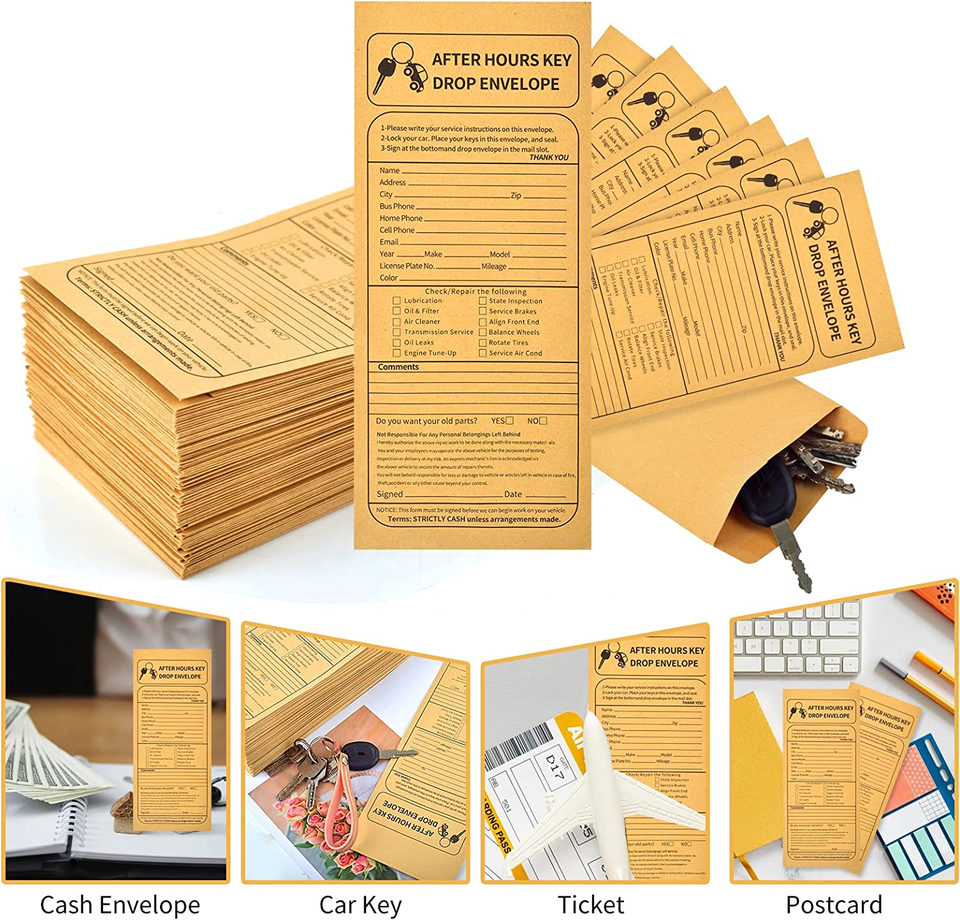 Enveloppes à clés 4 1/8x9 1/2, enveloppe kraft personnalisée, emballage de billets, enveloppes d'argent
