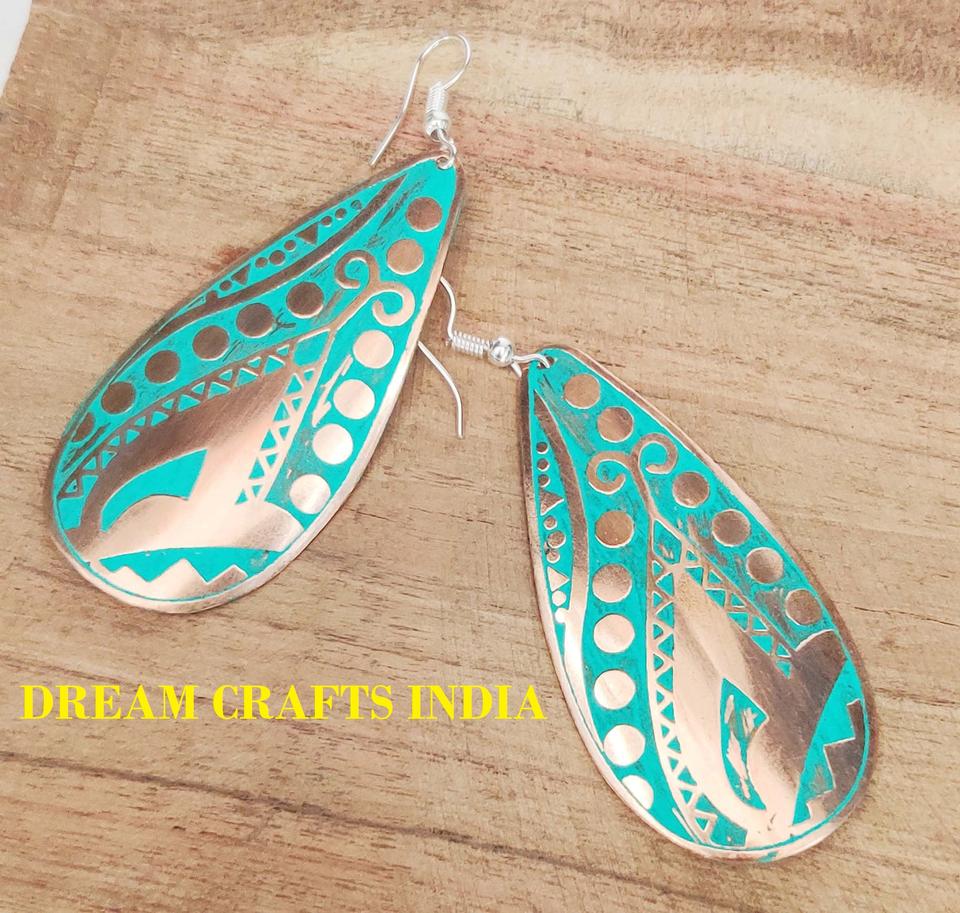 Boucles d'oreilles pendantes en cuivre pur faites à la main motif gravé rempli de couleurs personnalisées ensembles d'accessoires de bijoux de mode gravés mode en métal