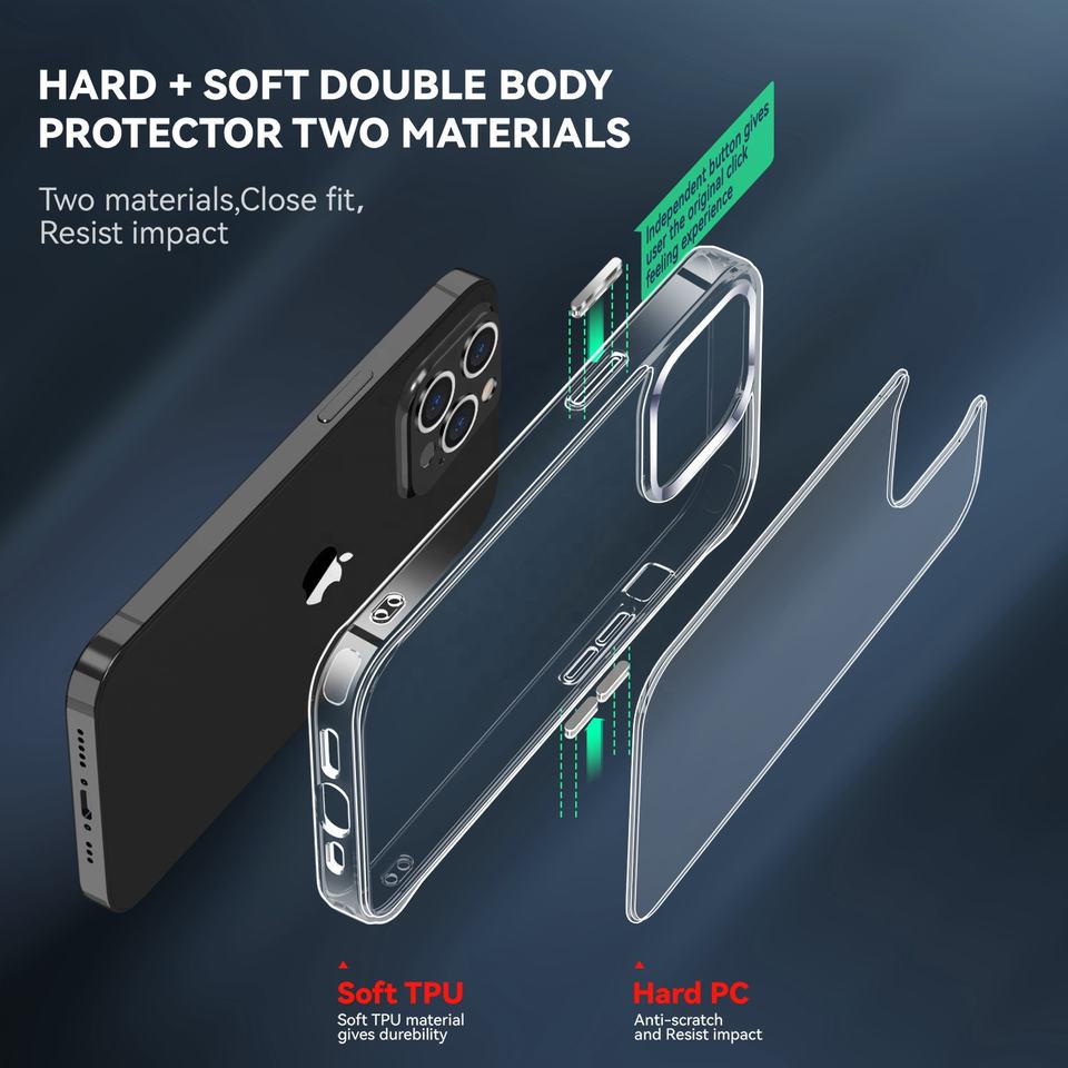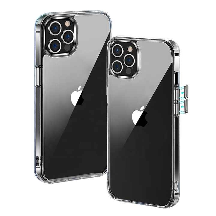 Protection contre les chutes Coque arrière 2.0mm pour iPhone 17 16 15 14 13 12 11 Coque PC transparente pour iPhone 17 Coque de téléphone à bouton métallique