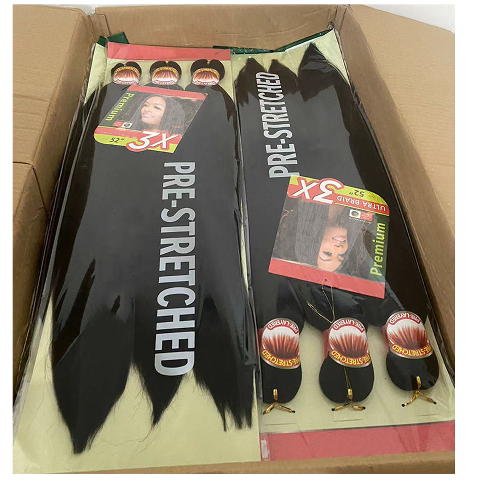 Extensions de cheveux synthétiques pré-étirées 3X 52 pouces pour livraison directe, fibre à basse température, tressage facile, 3 paquets de 300g pour femme africaine