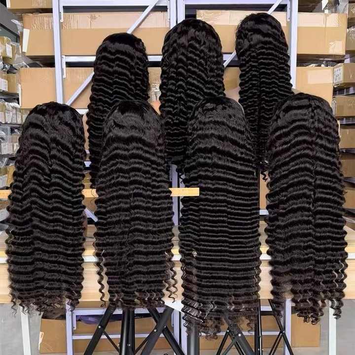 Dropshipping Perruques vierges en cheveux humains Deep Wave à cuticule alignée Perruques HD Lace Frontal pré-plumées Wear and Go