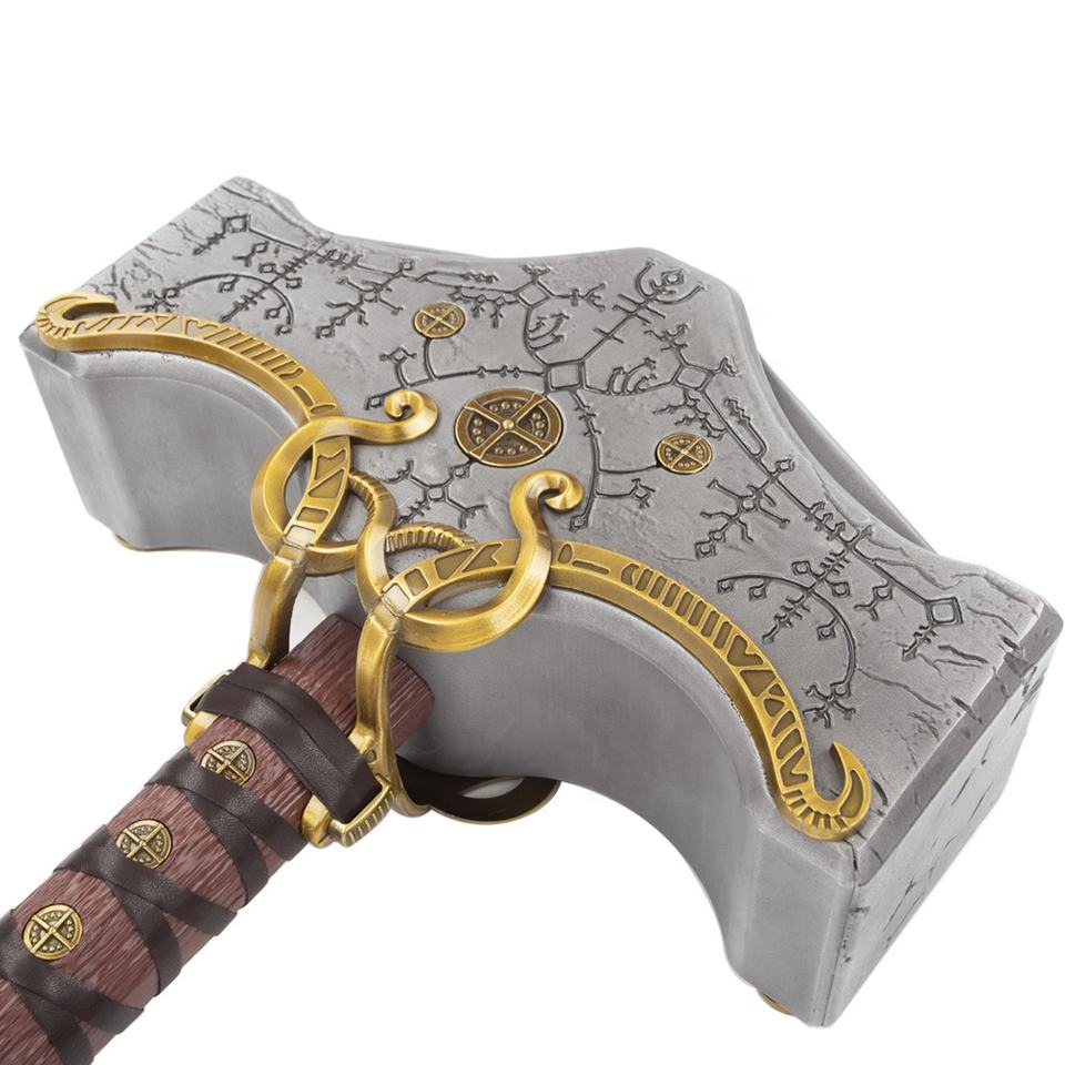 Drop Shipping Full Metal 1:1 Scale God of War Ragnarok Cosplay Prop Replica Mjolnir Thor Hammer avec base en résine
