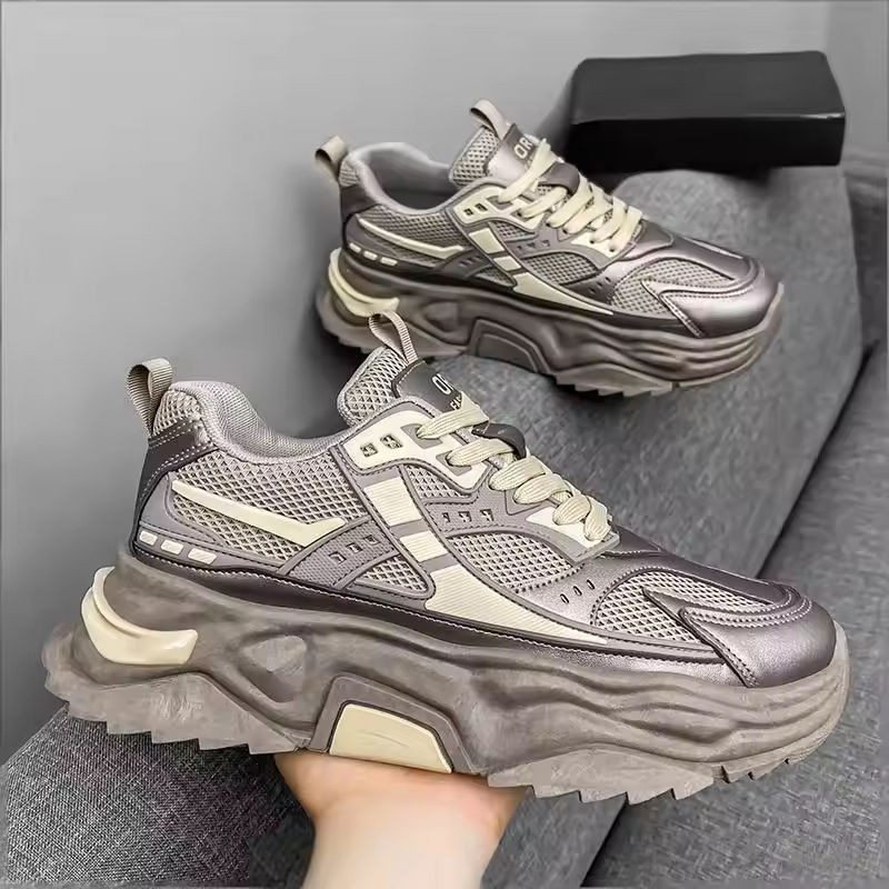 Chaussures de course pour hommes, style chunky, grande taille, tendance, en maille respirante, à lacets, antidérapantes, à semelle épaisse, pour le dropshipping