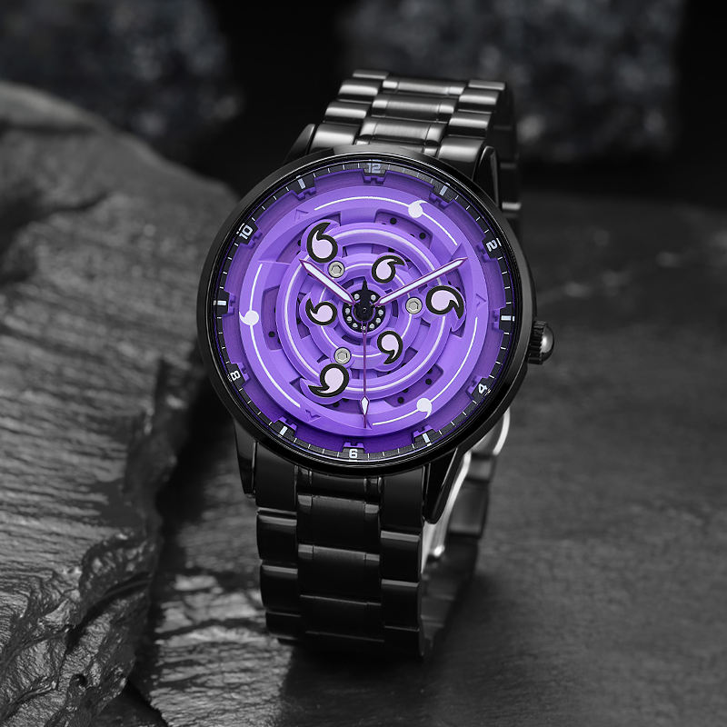 Montre à quartz rotative créative Sharingan, style sport, acier inoxydable noir, cadeau pour homme, montre-bracelet.