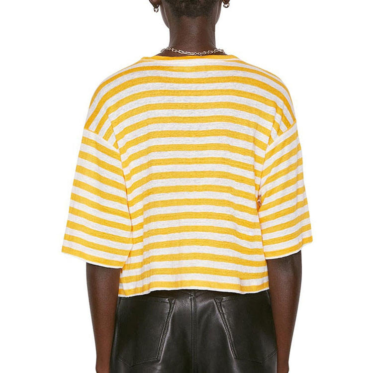 T-shirts courts pour femmes à épaules tombantes avec rayures contrastées – Commandes en gros, faible MOQ – Vêtements d'été, hauts courts