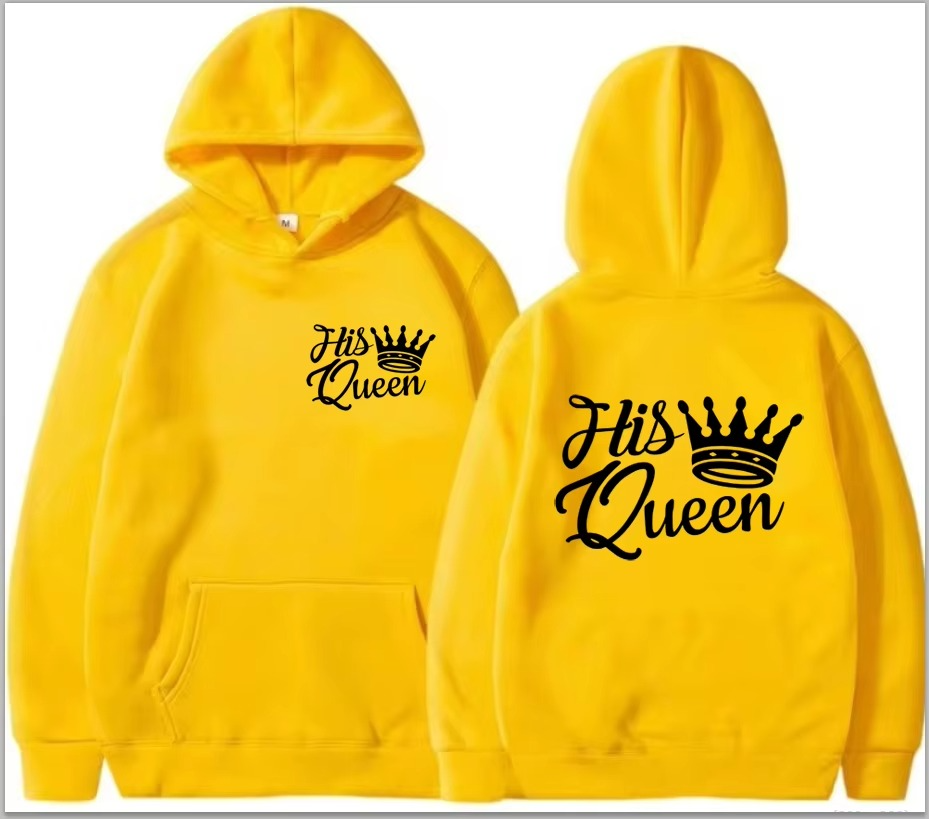 Drop Shoulder Couples HOODIES Hommes et Femmes King and Quee Black Print Valentine's Day Hoodies Winter Hooded