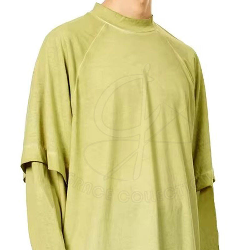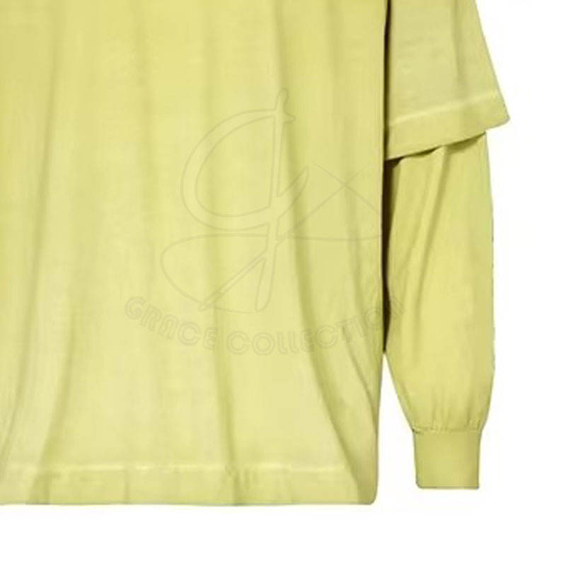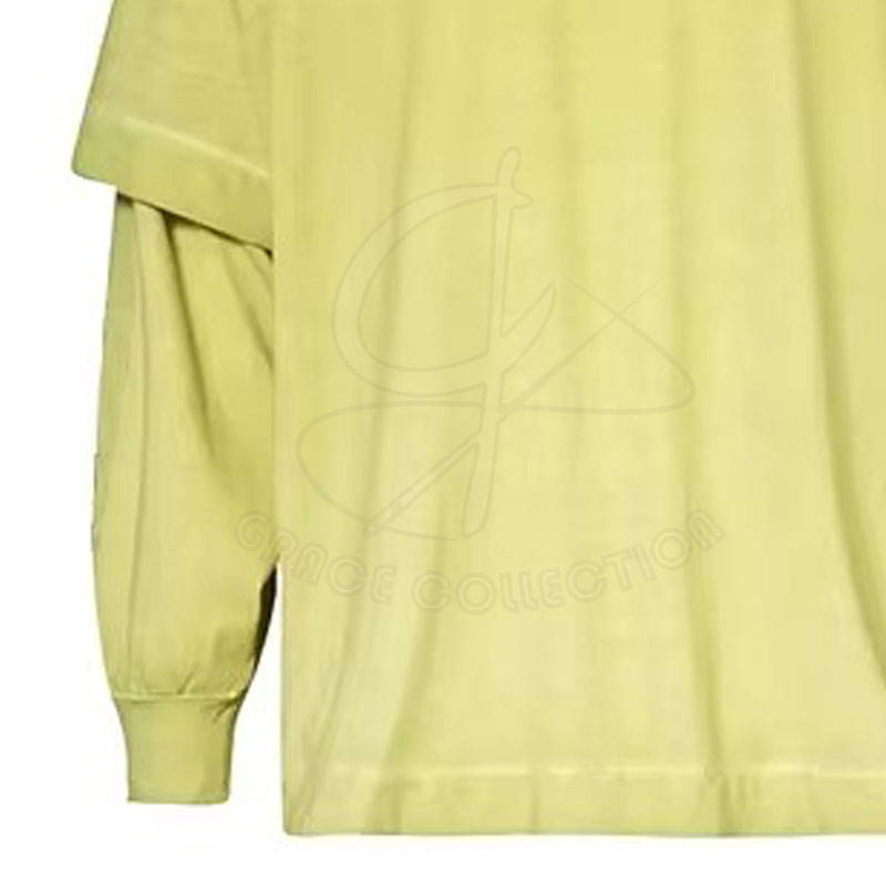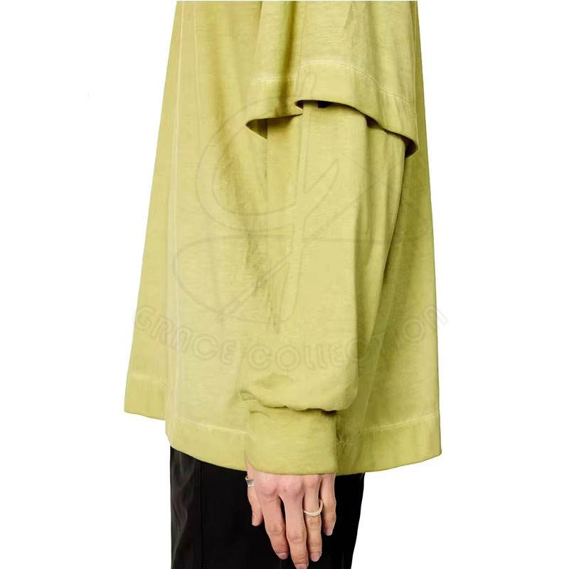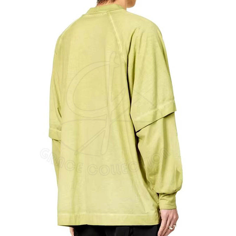 T-shirts à col rond double couche à épaules tombantes 100% coton T-shirts à manches longues pour femmes avec marque privée