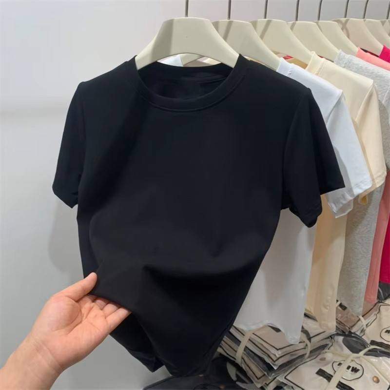 T-shirt court à épaules tombantes pour femmes, mélange de coton Pima extensible, bord brut, coupe ajustée, tendance, pour club et été