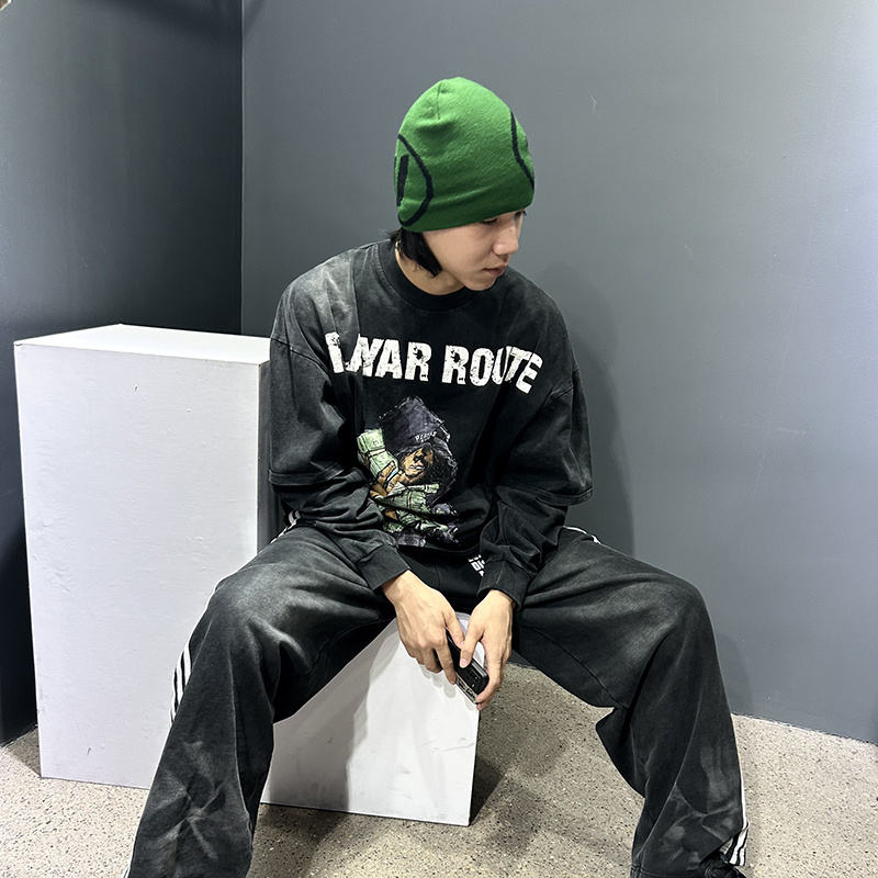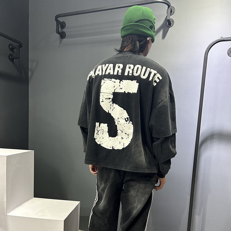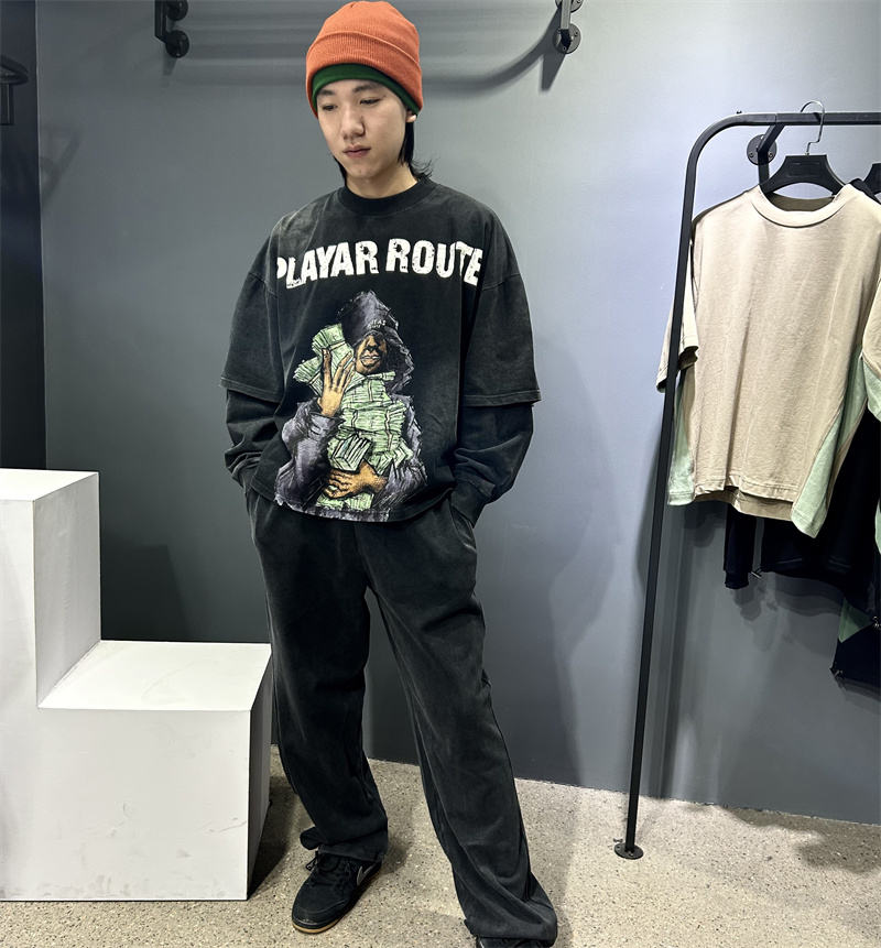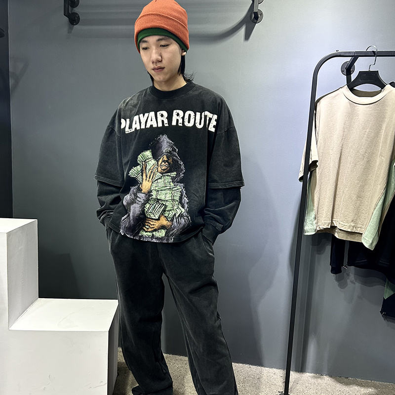 Sweat-shirt à col rond avec épaules tombantes Pull-over personnalisé à impression DTG Sweat-shirt pour hommes Distressed Acid Washed Sweat-shirt de qualité supérieure