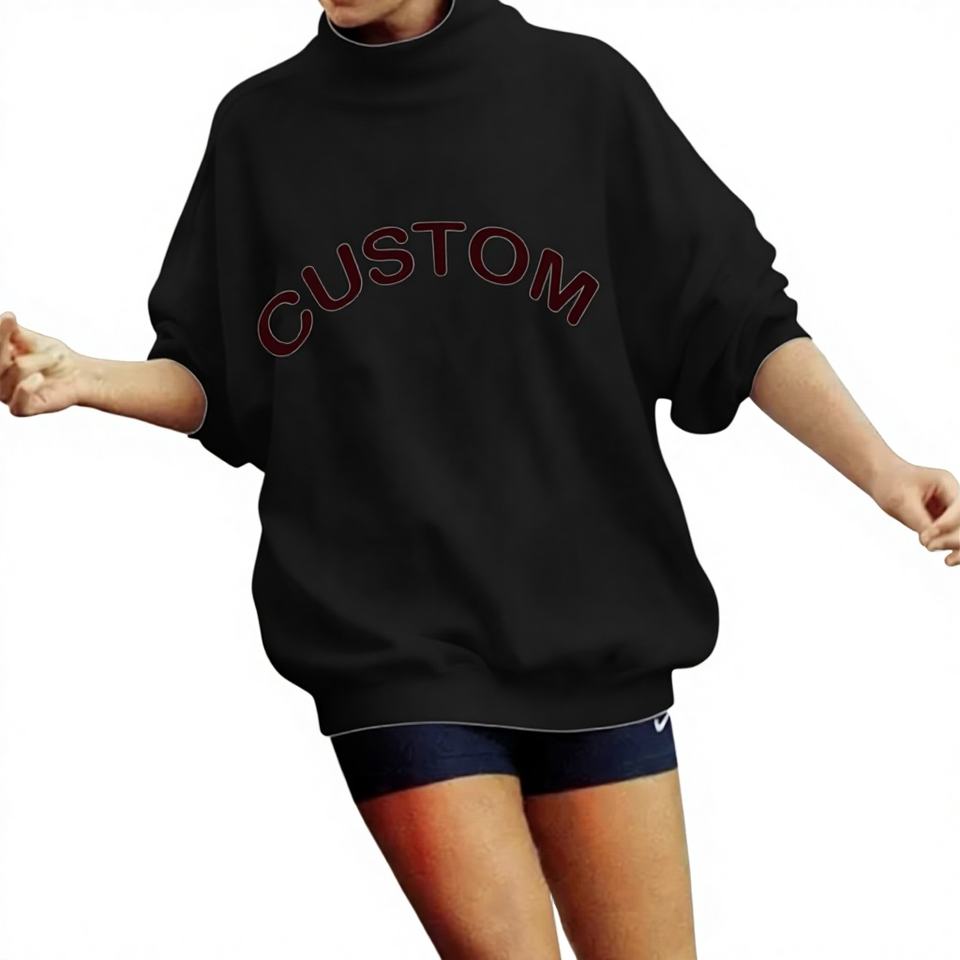 Drop Shoulder Custom Letter Printing Women's Knitted Mock Neck Sweatshirt Cozy Fleece Oversized Long Sleeve Daily Wear