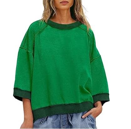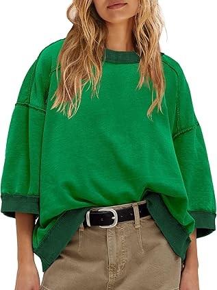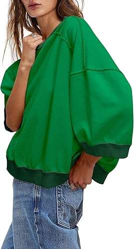 Épaule Épaisse Couleur Verte Femmes Col Ras du Cou Imprimé Personnalisé Broderie 3D Polaire Respirant Plaine Sweat à Manches Longues