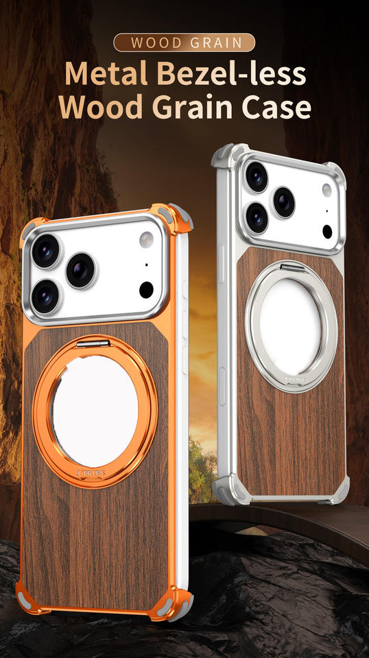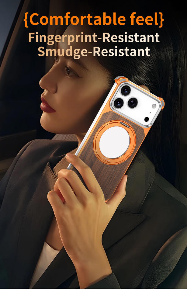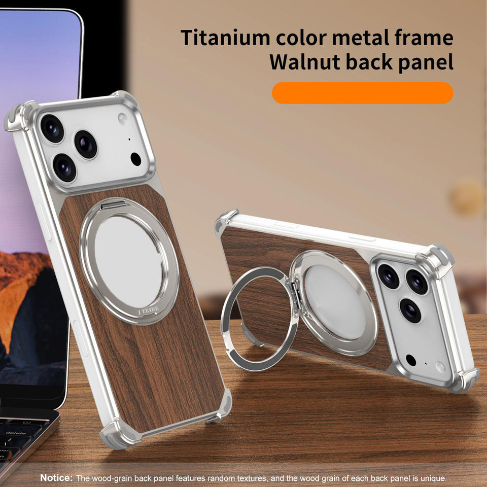 Étui de téléphone portable en bois de noyer gaufré avec support magnétique rotatif antichute pour iPhone 16 Pro, 17 Pro Max, 15 Pro
