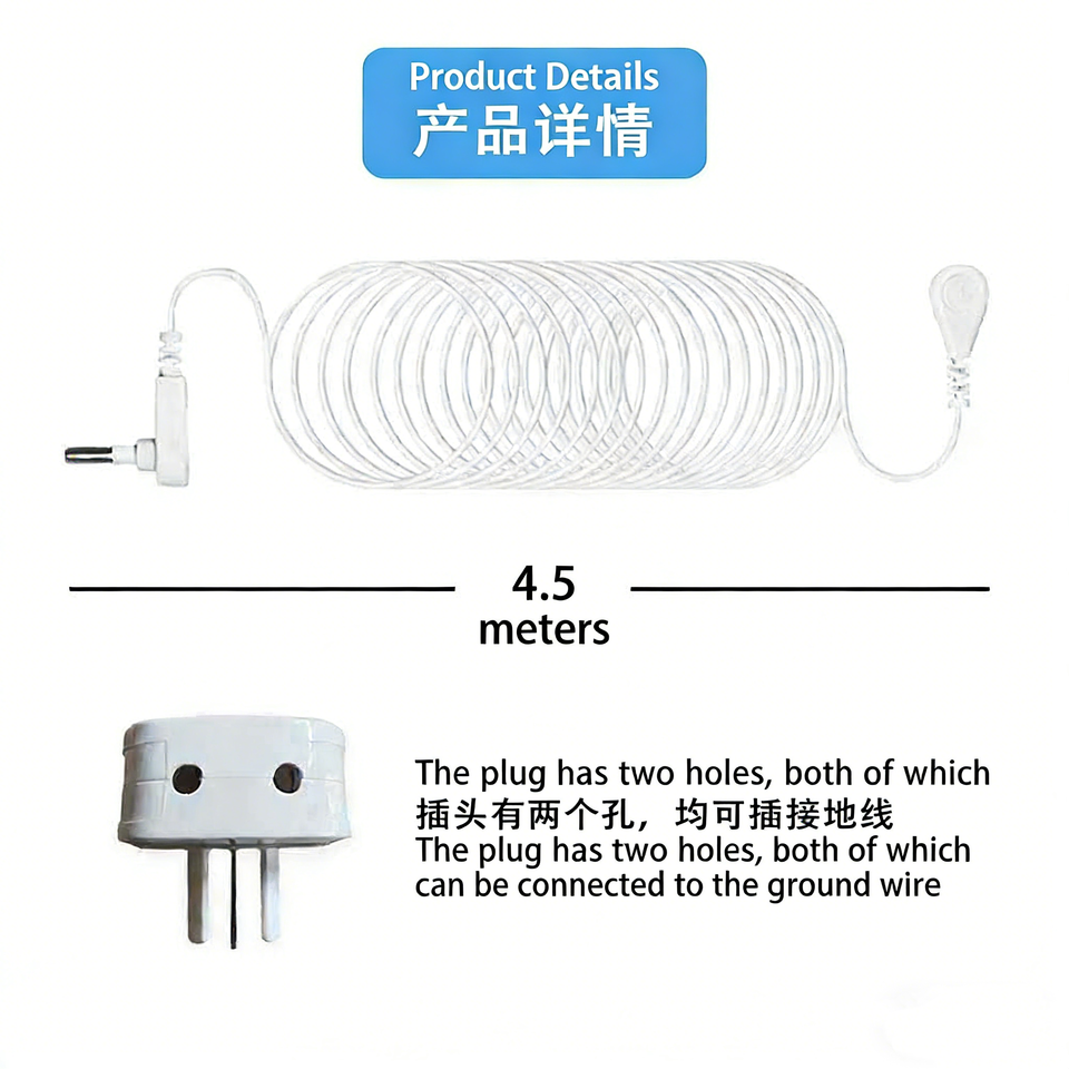 Câbles de mise à la terre pour le dropshipping, cordon conducteur de 15 pieds, cordon de mise à la terre blanc certifié OEKO