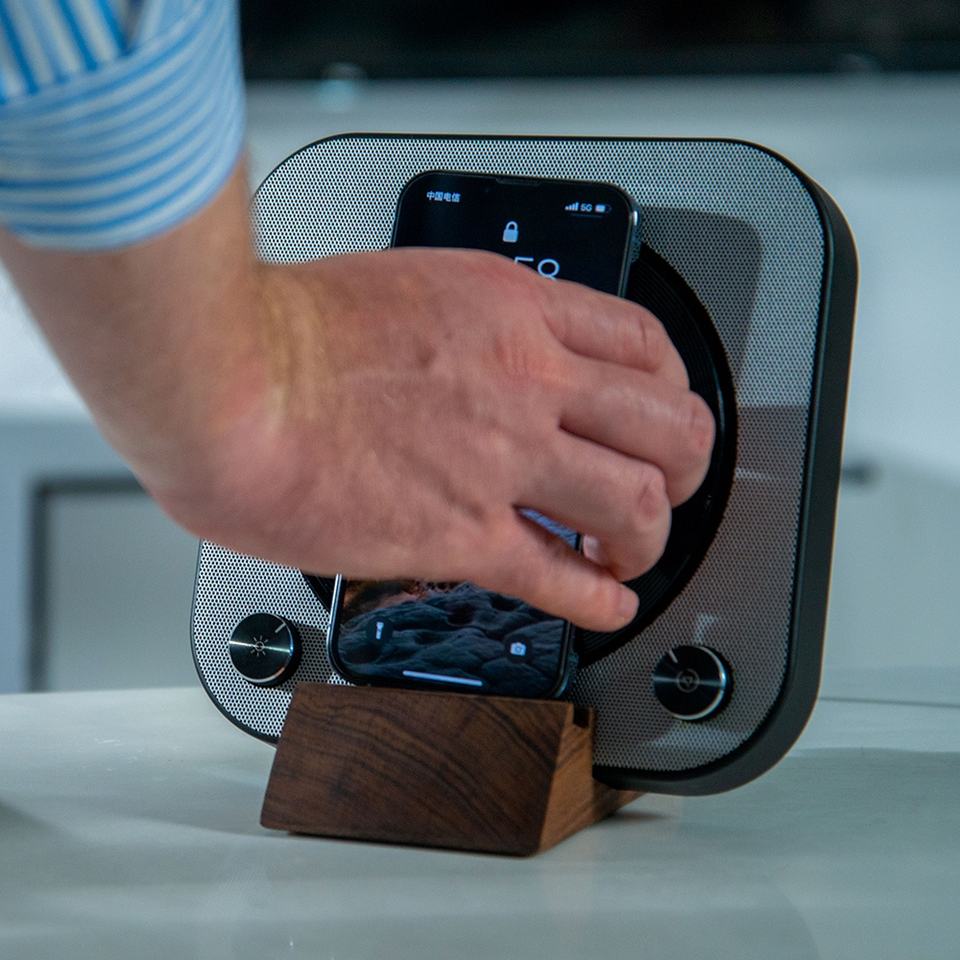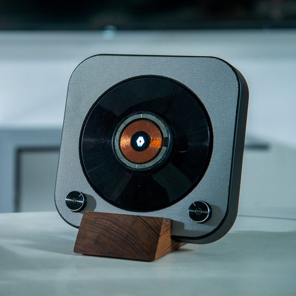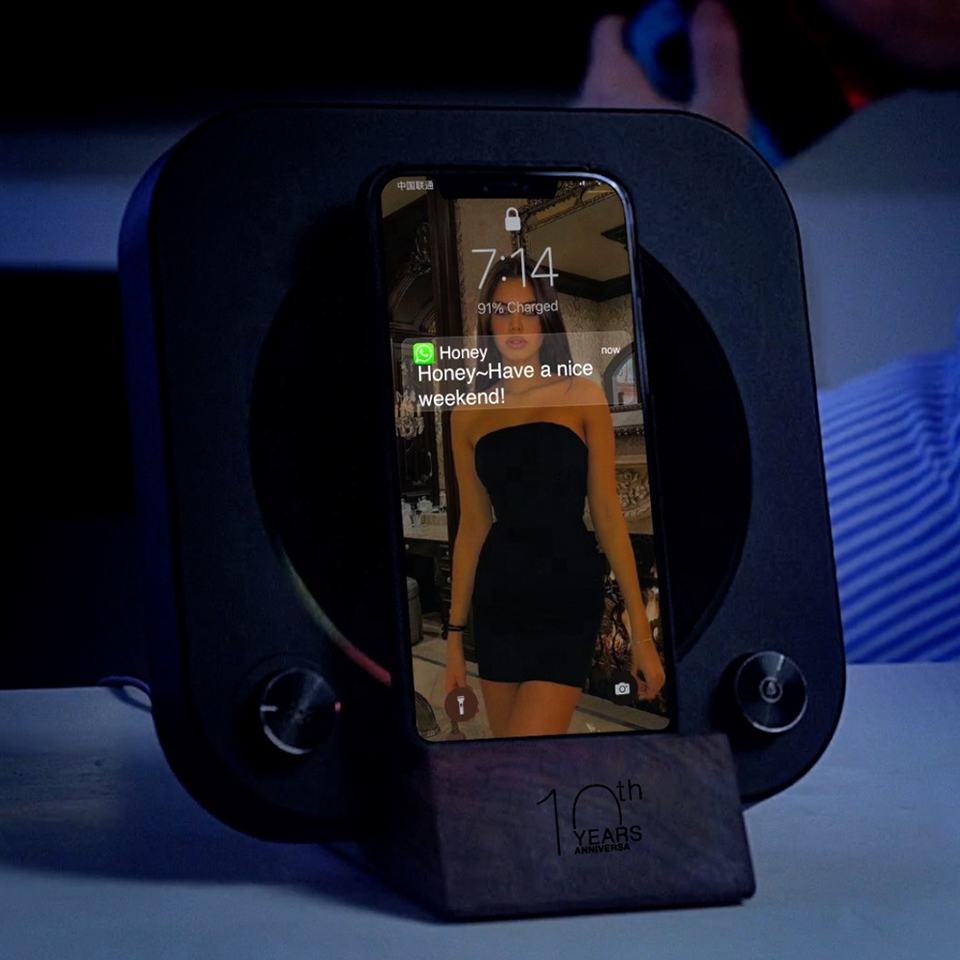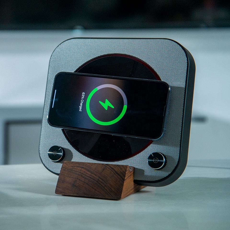 Drop Shipping High Sound Quality Mini Portable CD Player Round Smart Rgb Led Light Wireless Charger Music Speaker