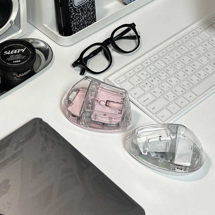 Souris verticale sans fil Droplet Bluetooth 2.4G Design transparent ergonomique avec rétroéclairage LED RVB, rechargeable, DPI réglable