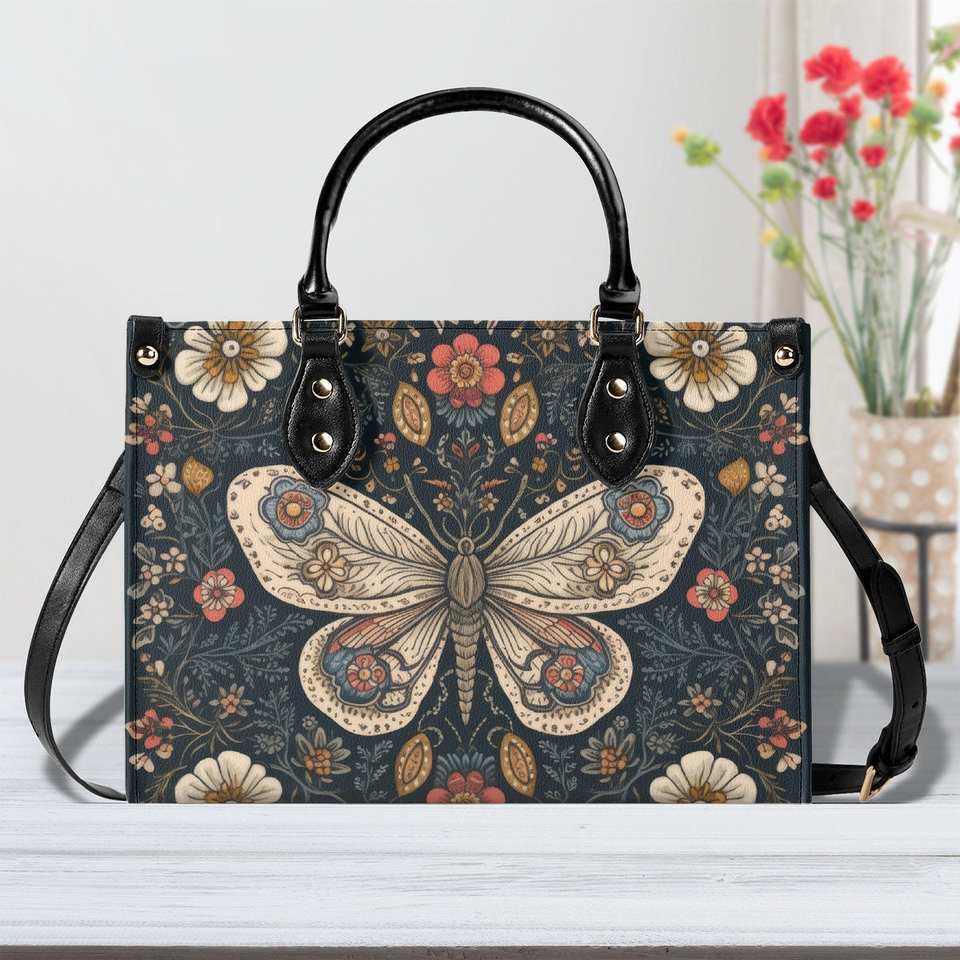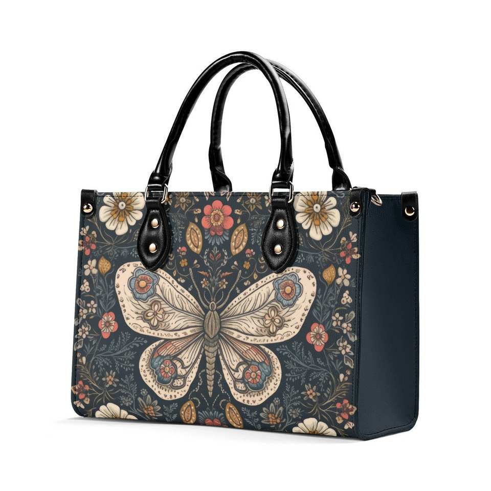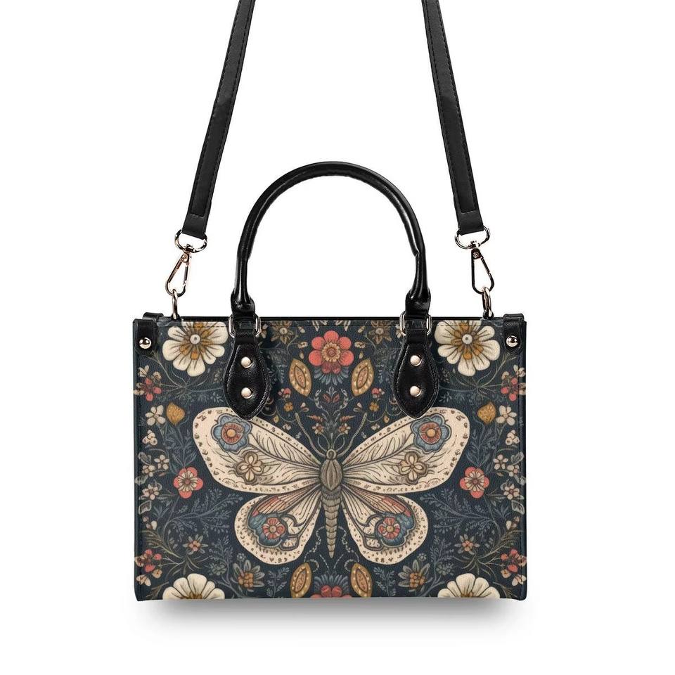 Dropship POD Luxury Lady Tote Bag Whimsical Folk Art Style Butterfly PU Leather Handbag for Women