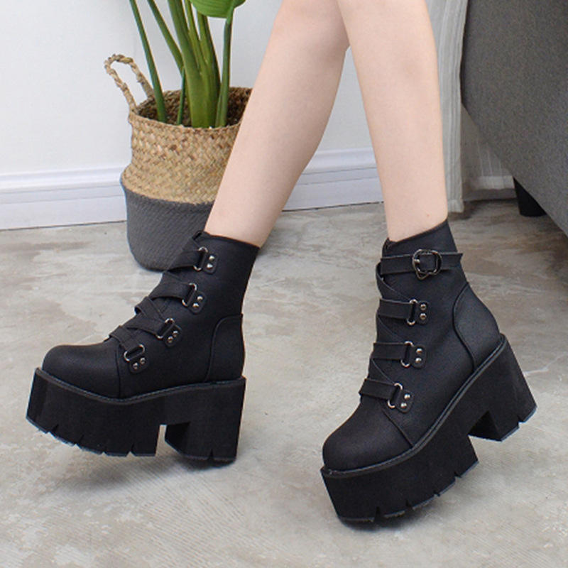Style:Autres, Moto et motard, À lacets, Haut haut, Plateforme, bottine Martin, bottes de cowboy, Chaussures de marche