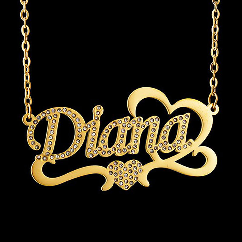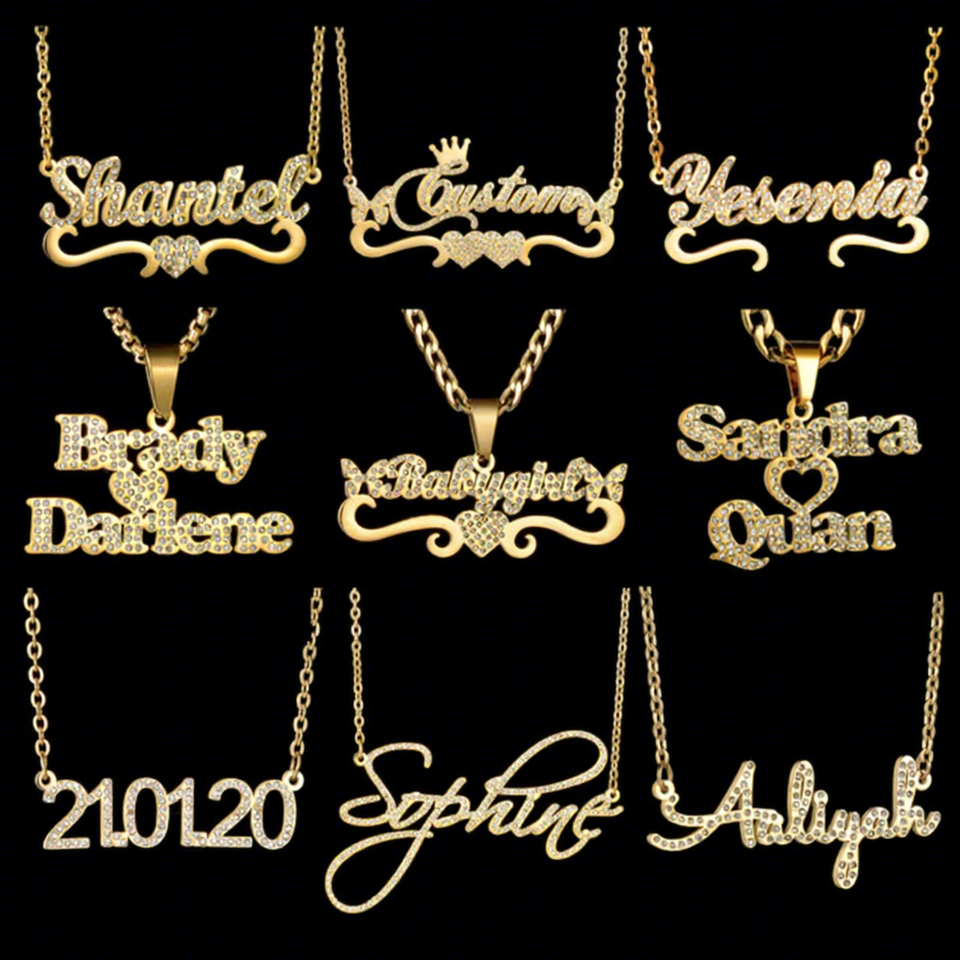 Collier Pendentif Personnalisé en Acier Inoxydable Plaqué Or 18K, Tendance, avec Nom et Numéro, Micro-Serti de Diamants, Idéal pour Fêtes, en Dropshipping