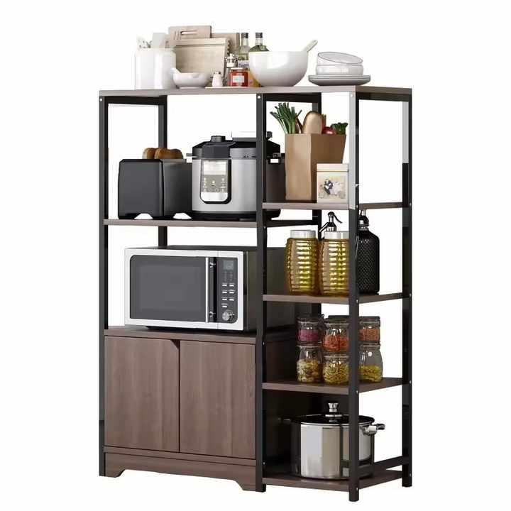 Étagère de cuisine en métal avec armoire de rangement, support pour micro-ondes et organisateur d'épices et de casseroles, idéale pour le dropshipping