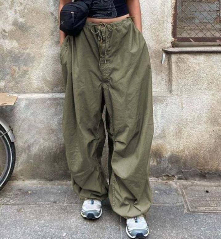 Nouveau pantalon cargo parachute pour femme, coupe large, en coton tissé, élastique, tendance, très écologique, coupe-vent, pour le travail et le sport, pour le dropshipping