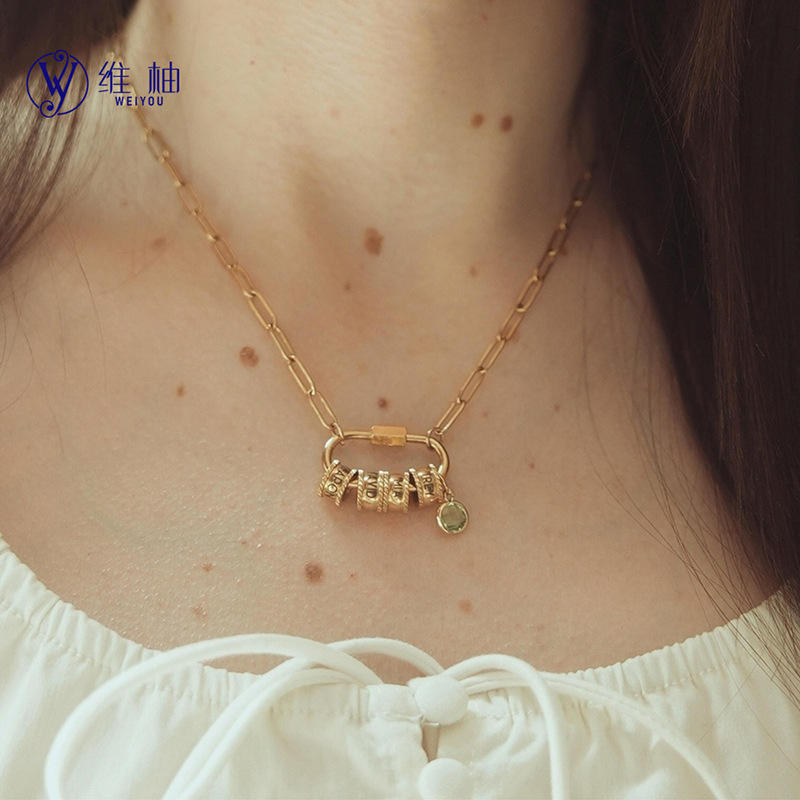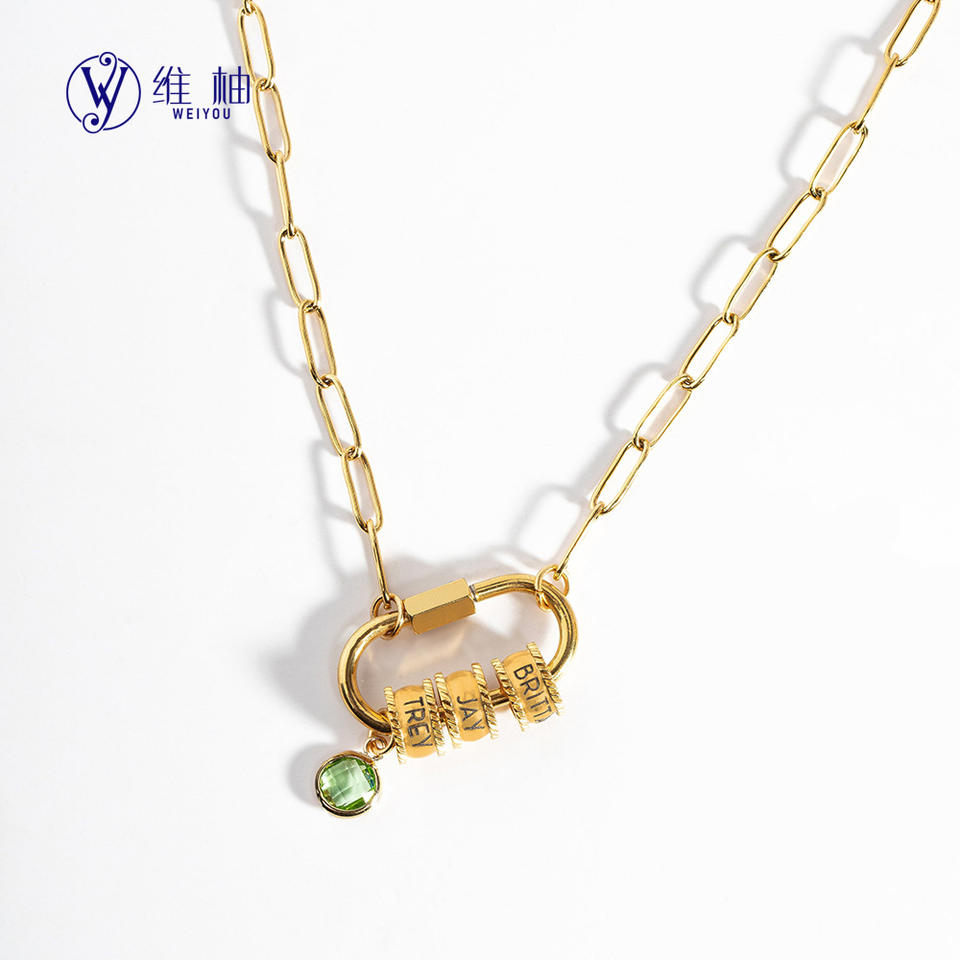 Collier en forme de trombone avec pierre de naissance en 12 couleurs, personnalisable avec nom gravé, cadeau pour femme, idéal pour le dropshipping Shopify POD