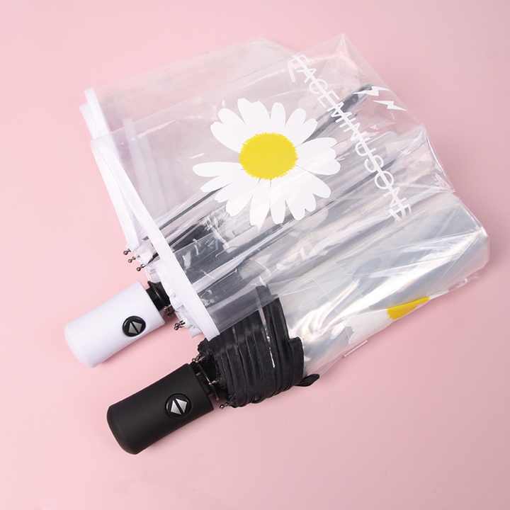 Dropshipping Blanc Transparent Style Japonais Marguerite Parapluie Semi-Automatique Ins Pliable Étudiant Style PVC Parapluie Peut Personnalisé