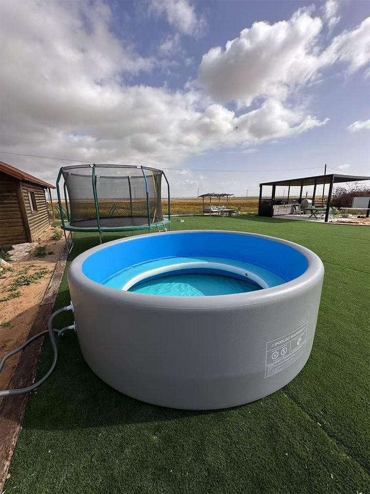 Piscine gonflable Dropstitch avec sièges pour adultes et enfants, pour la détente estivale en extérieur dans la cour.