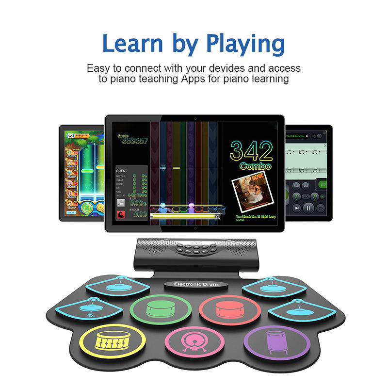 Kit de batterie USB MIDI pour ordinateur de bureau, tambour électronique à enrouler;