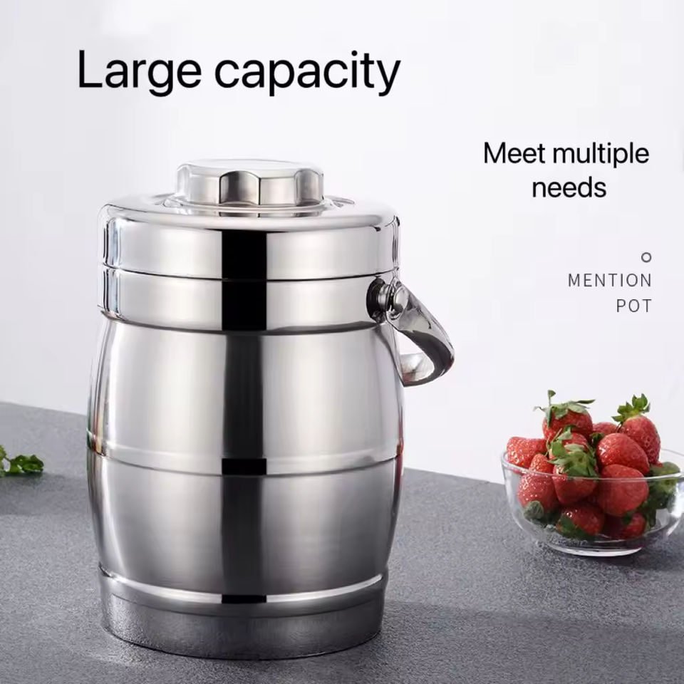 Boîte à lunch ronde à 3 étages en forme de tambour, boîte à lunch isotherme en acier inoxydable