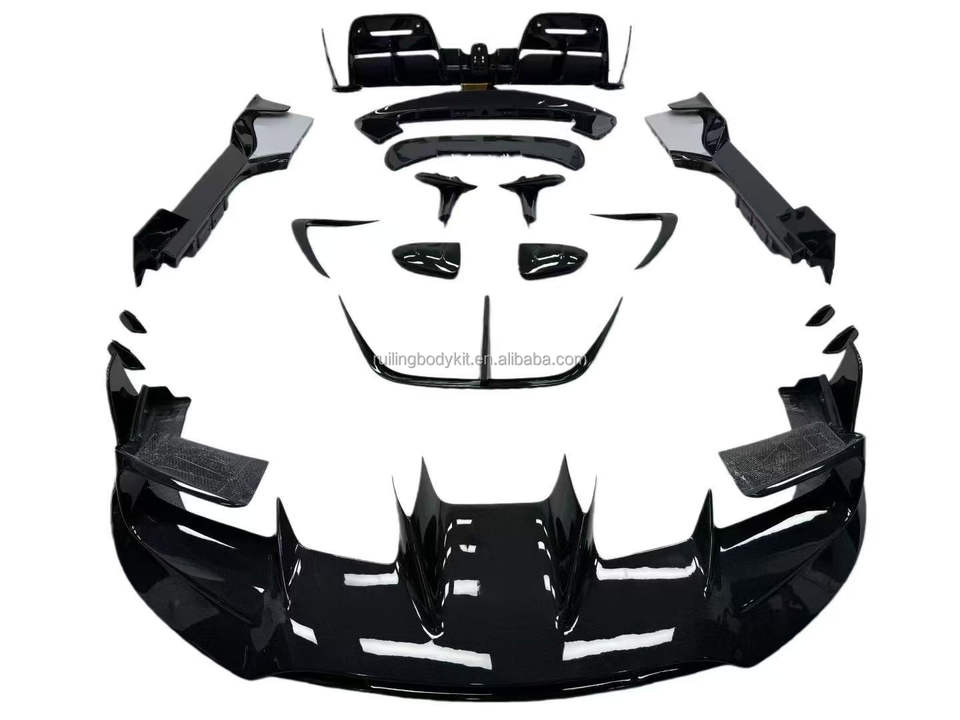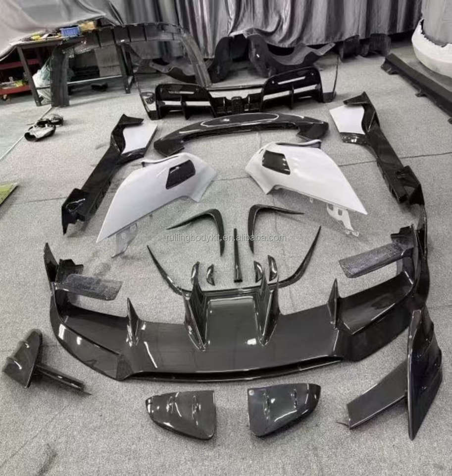 Kit carrosserie en fibre de carbone sèche style MSY pour Ferrari SF90 : Lame avant, diffuseur arrière, jupes latérales, coques de rétroviseurs, pare-chocs