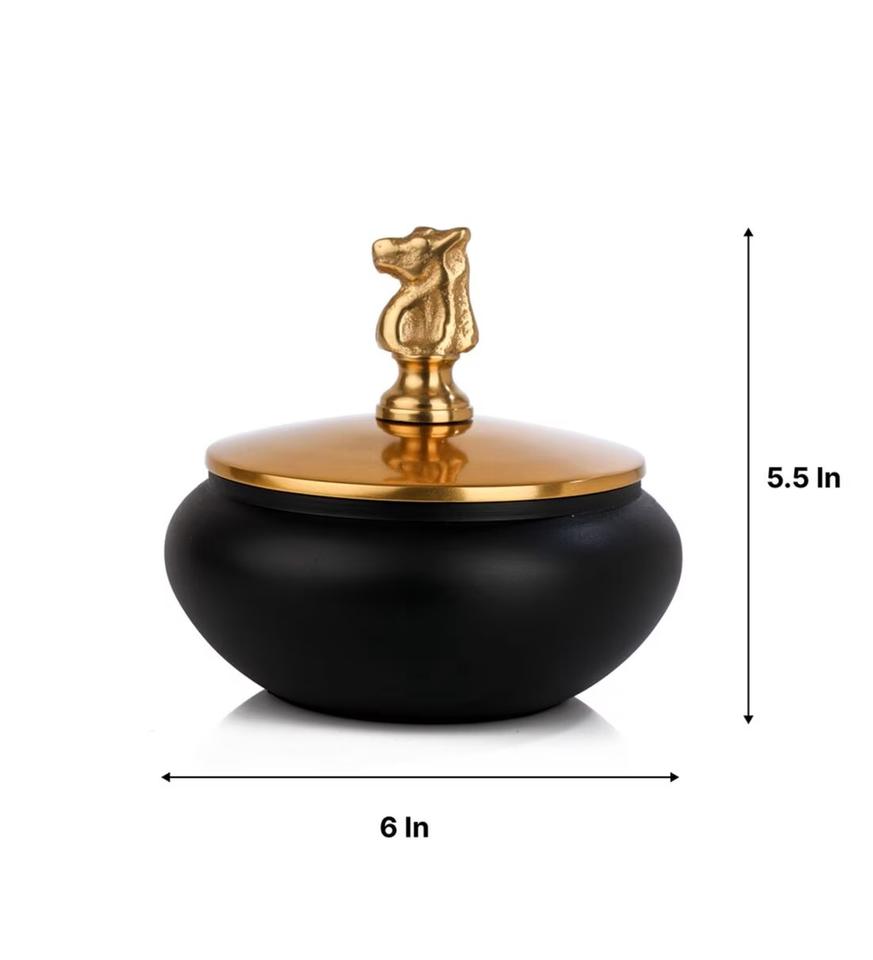 Boîte de rangement pour fruits secs et noix avec couvercle Pot à bonbons en aluminium de dernière conception avec logo Récipient en métal enduit noir avec couvercle