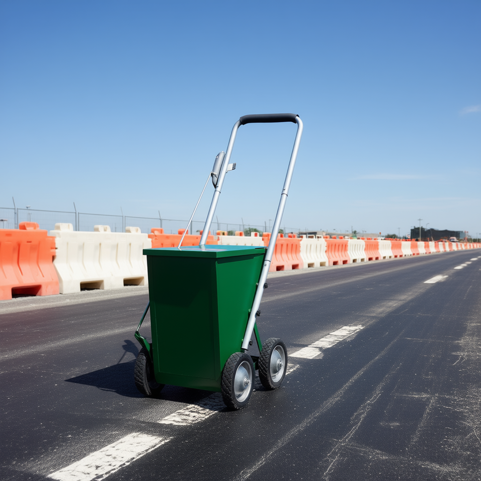 Machine de marquage routier à sec robuste à 4 roues en acier, capacité 50 lb, verte