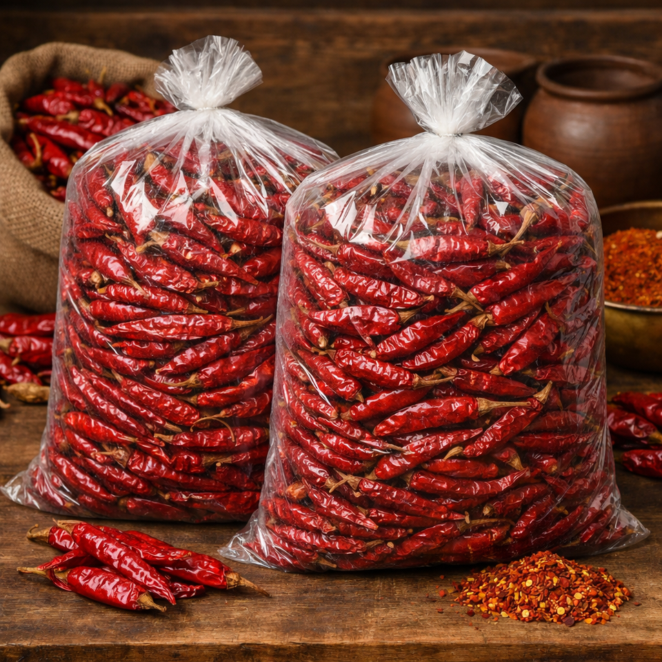 Piment rouge séché (Mathania Chili) à piquanté moyen-haute, entier, sans tige et en poudre, pour usage en curry/sauce