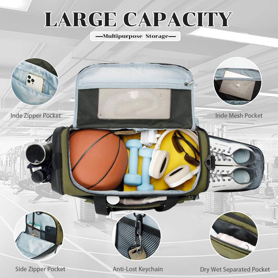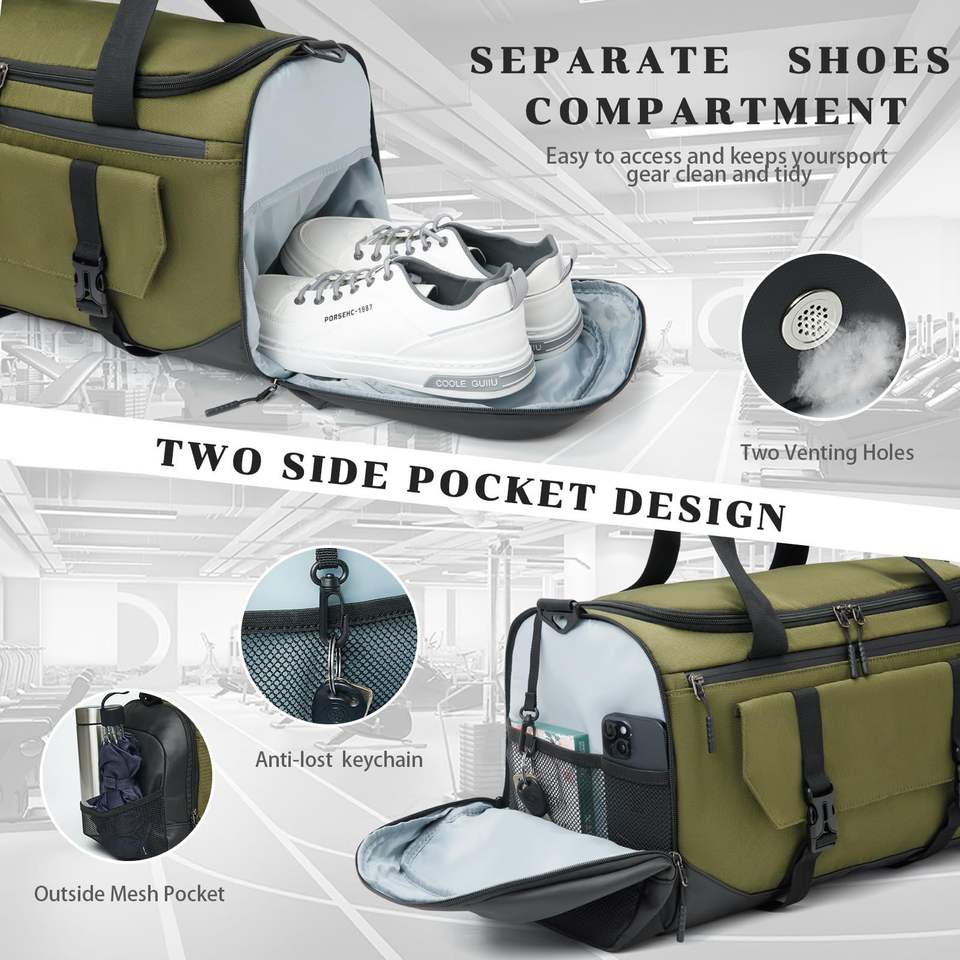 Sac de sport avec séparation sec/humide, compartiment à chaussures, résistant à l'eau, léger, bretelles réglables pour les voyages et la salle de sport