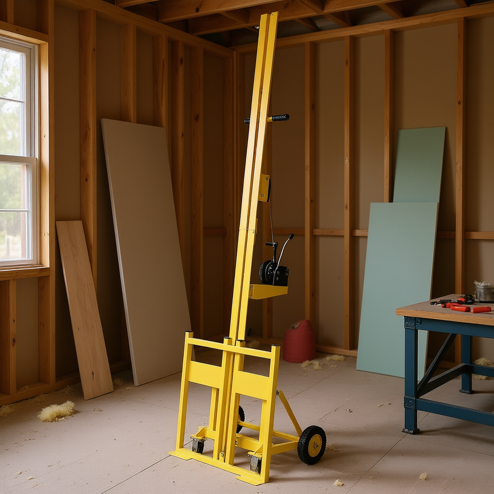 Lève-plaque de plâtre jaune, capacité de charge 150 lb, palan à chaîne manuel pour la manipulation des panneaux de plâtre de construction
