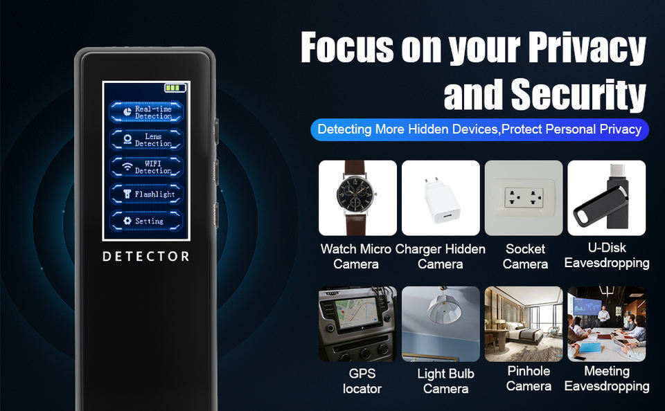 Ds626 Détecteur Wi-Fi multifonction, détecteur de signaux RF, traqueur GSM GPS, détecteur de signaux laser GSM Wi-Fi, anti-espionnage
