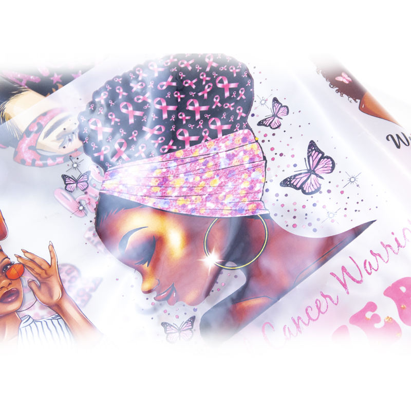 Transfert dtf personnalisé lutte contre le cancer du sein fille noire vinyle conceptions sérigraphie transferts plastisol autocollants pour t-shirts