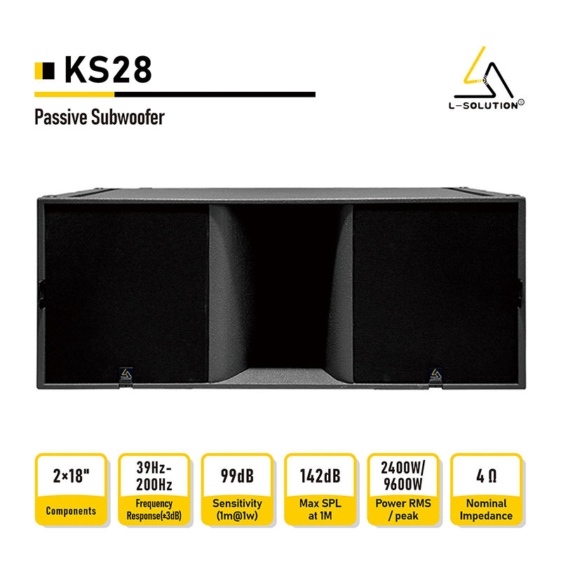 Caisson de basses portable passif à double haut-parleur de 18 pouces en néodyme 4 ohms, en contreplaqué de bouleau, 2400 W