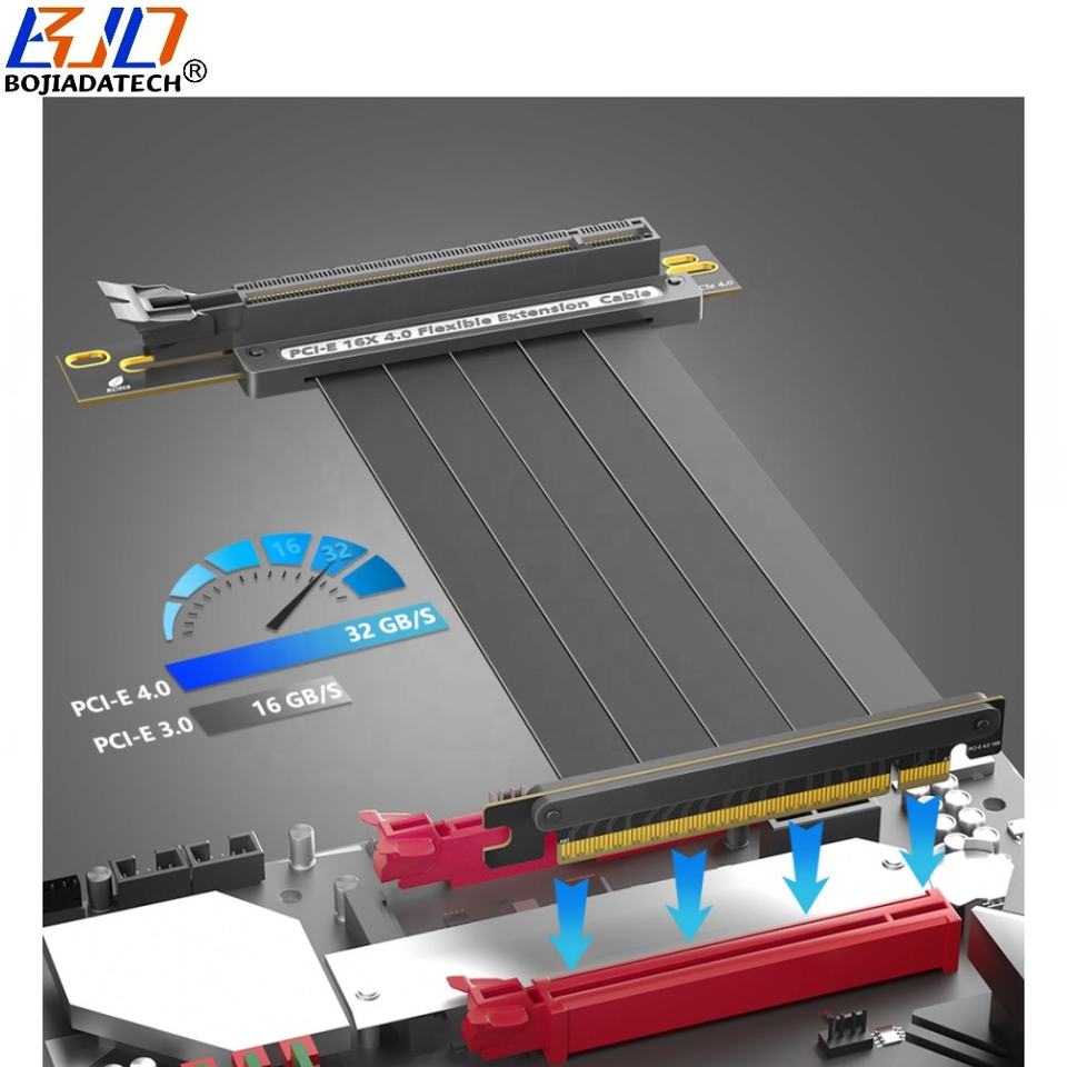 Double câble d'extension pour carte graphique PCI-E 4.0 16X à PCIe X16 90 degrés 20CM pour RTX3090ti RTX4090ti RX6900XT RX6800XT