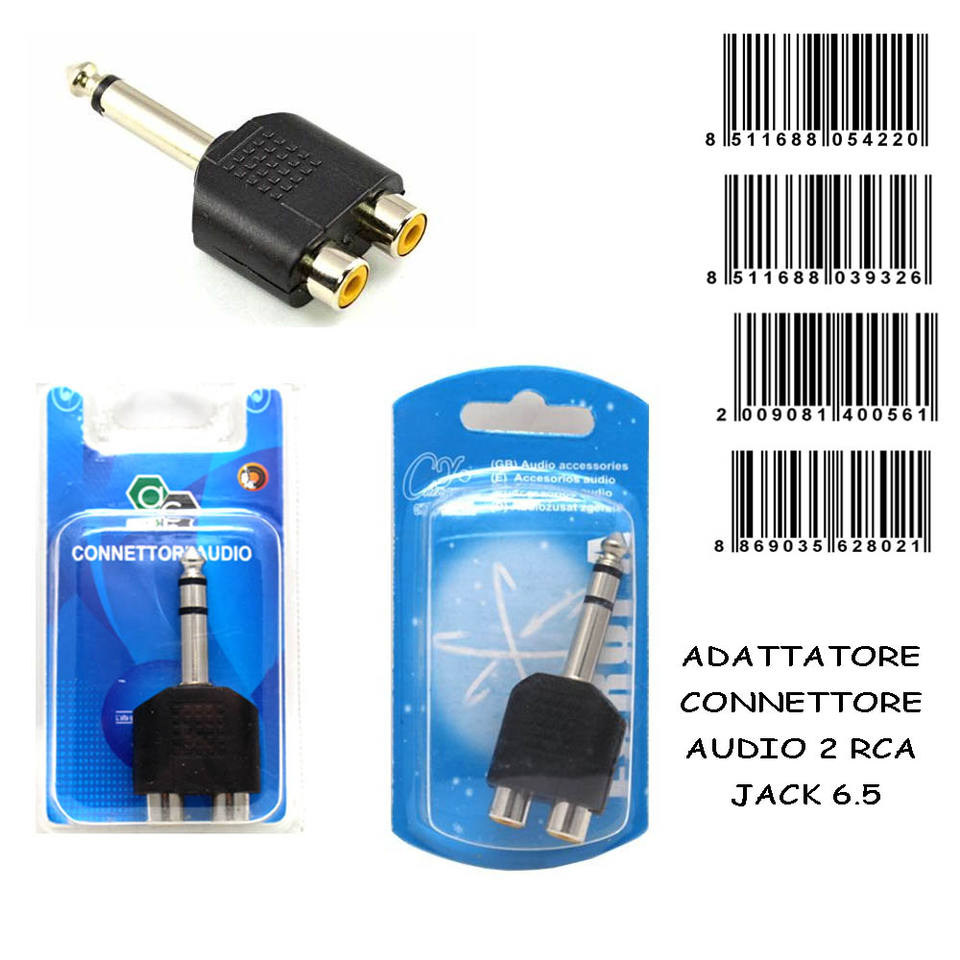 Adaptateur audio double canal 6.35 vers connecteur femelle 2Rca pour équipement audio, matériau plastique