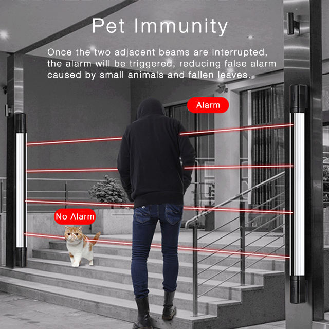 Alarme de périmètre pour porte/fenêtre avec capteur infrarouge à double faisceau, IP65, TCP, portée de détection de 5 à 100 m