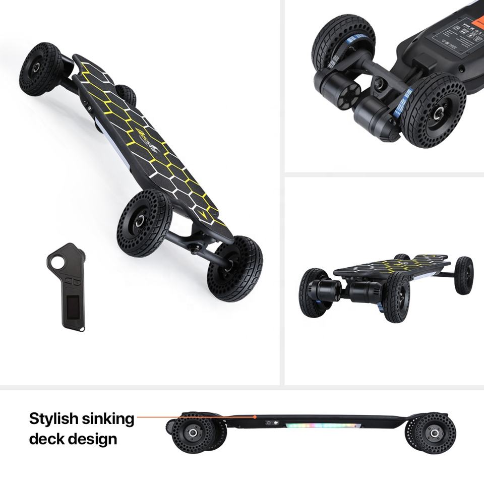 Planche à roulettes électrique tout-terrain à double transmission par courroie, 40 km/h, étanche, autonomie 20 km, plateau en érable de 6 pouces, roulements ABEC-7, 150 kg