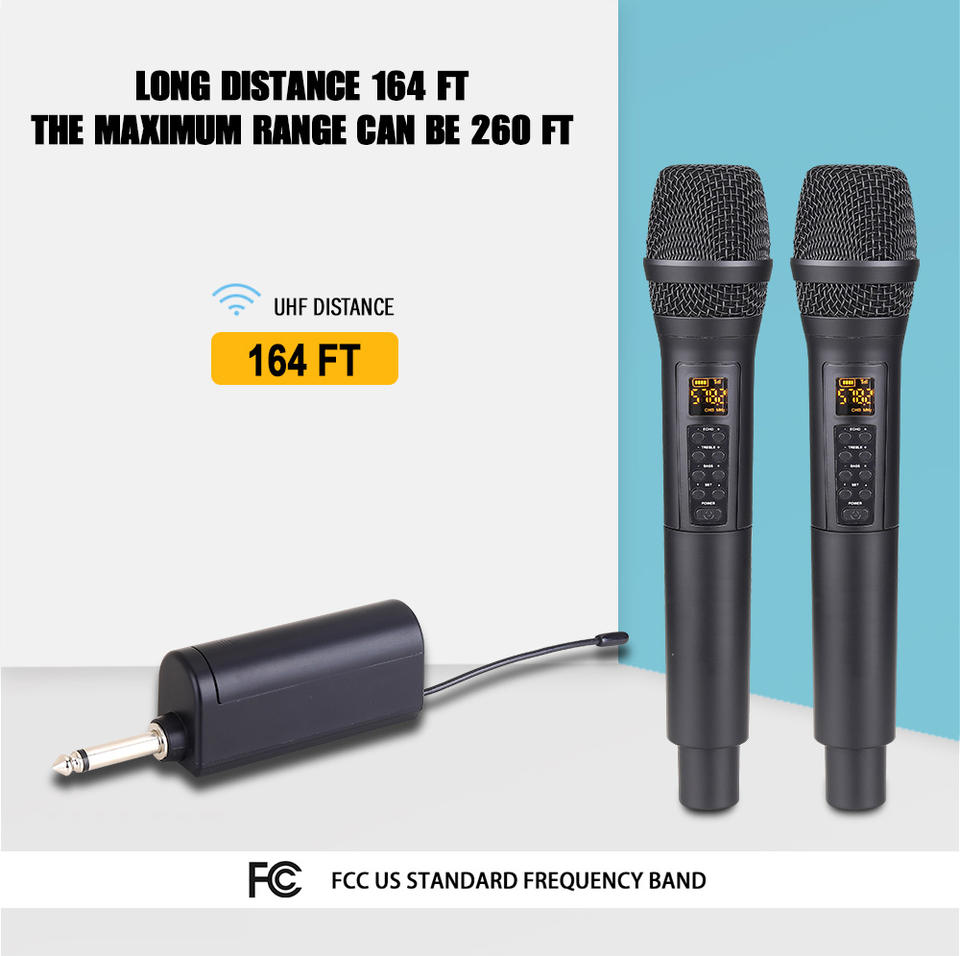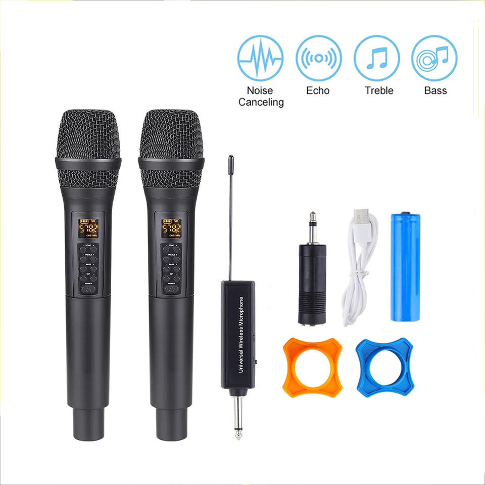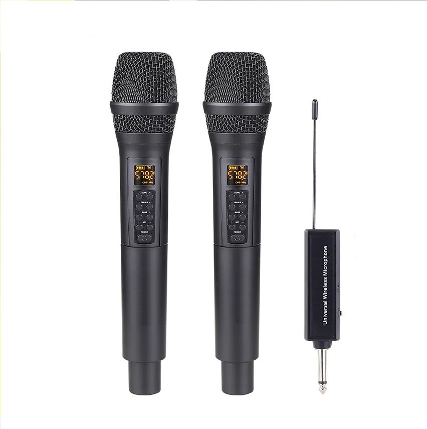 Système de microphone sans fil à double canal avec deux micros dynamiques portatifs, écrans LCD universels UHF en métal