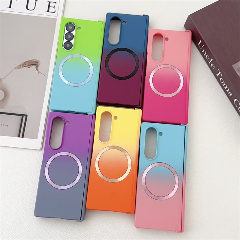 Coque rigide rigide à charnière magnétique double couleur dégradée pour Samsung Galaxy Z Fold 7 6 5 4 3 Housse de chargement sans fil